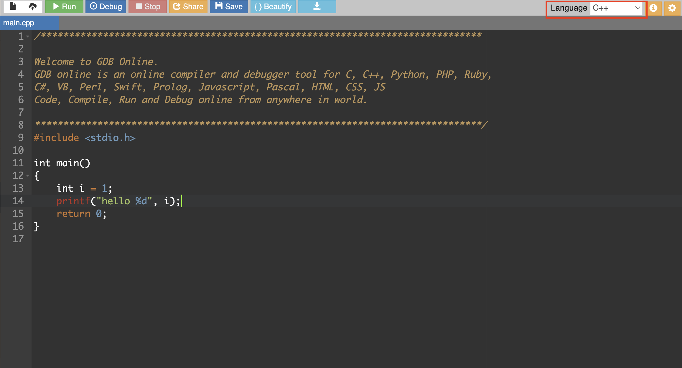GDB online Debugger | Compiler - Code, Compile, Run, Debug online C, C++